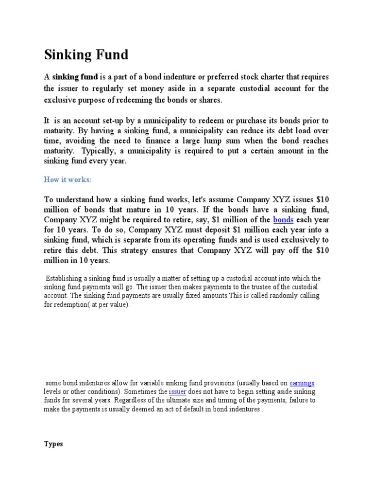 In addition to decreased risk, a sinking fund can also affect the overall yield and trading dynamics of a bond, and is directly related to what is a sinking fund bond. While these bonds may sometimes offer slightly lower yields than comparable bonds without this provision, the trade-off is often viewed as worthwhile for investors seeking capital preservation and reduced risk. The regular redemption of bonds through the sinking fund mechanism can also contribute to greater market liquidity. Since portions of the bond issue are systematically retired over time, this can create a more stable secondary market environment compared to bonds where the entire issue remains outstanding until maturity. Thus, although a sinking fund may slightly alter return, the enhanced security and potential for increased liquidity make investing in what is a sinking fund bond a wise choice for many investors, especially those prioritizing safety and stability within their portfolio. The presence of a sinking fund, and its structured repayment schedule, are often considered key aspects of a safer investment for the risk averse.